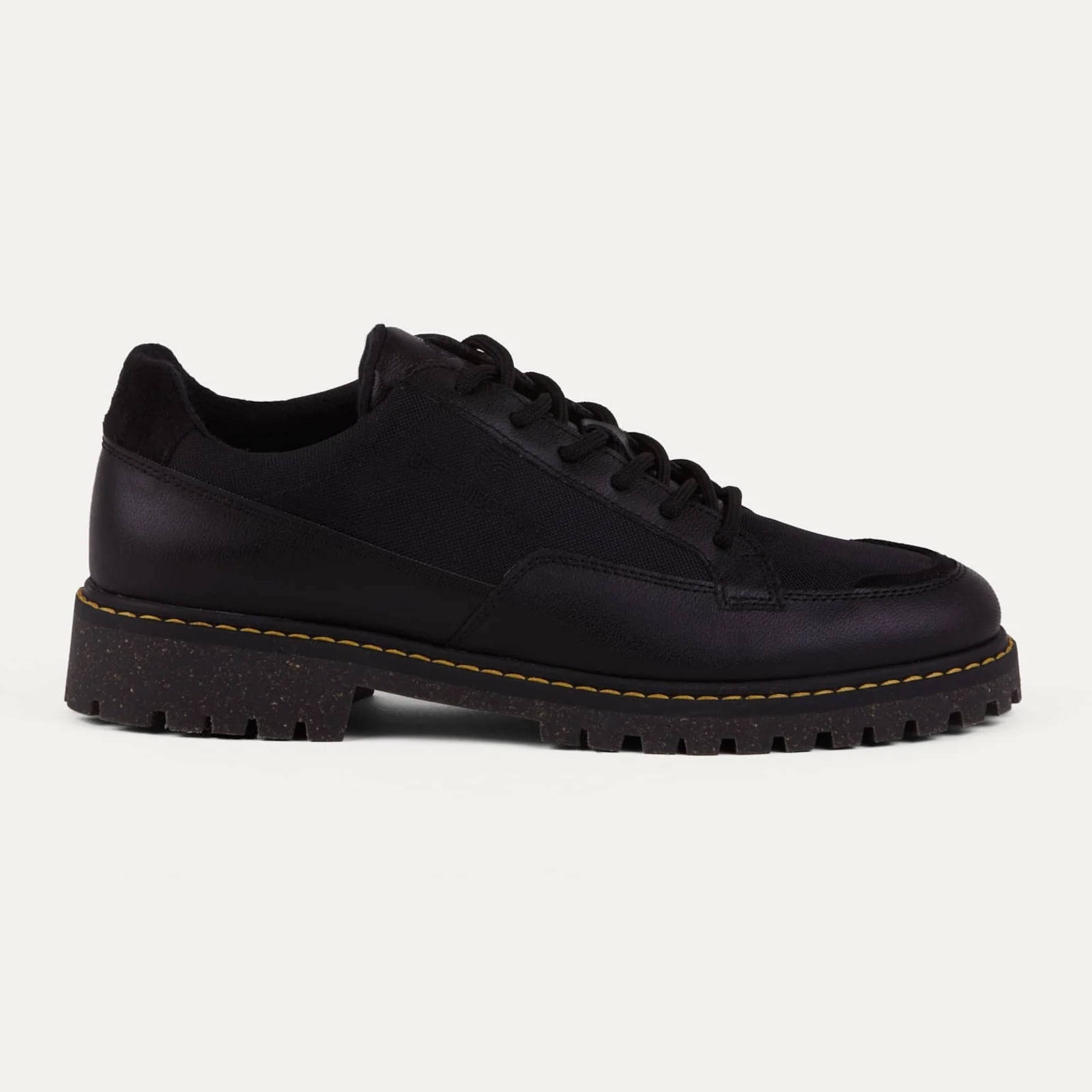 Die Sohle besteht aus recyceltem Gummi und Reisspelzen, die ein ausgewogenes Verhältnis zwischen Robustheit und Flexibilität bieten, wie es für diese Art von Schuh erforderlich ist.