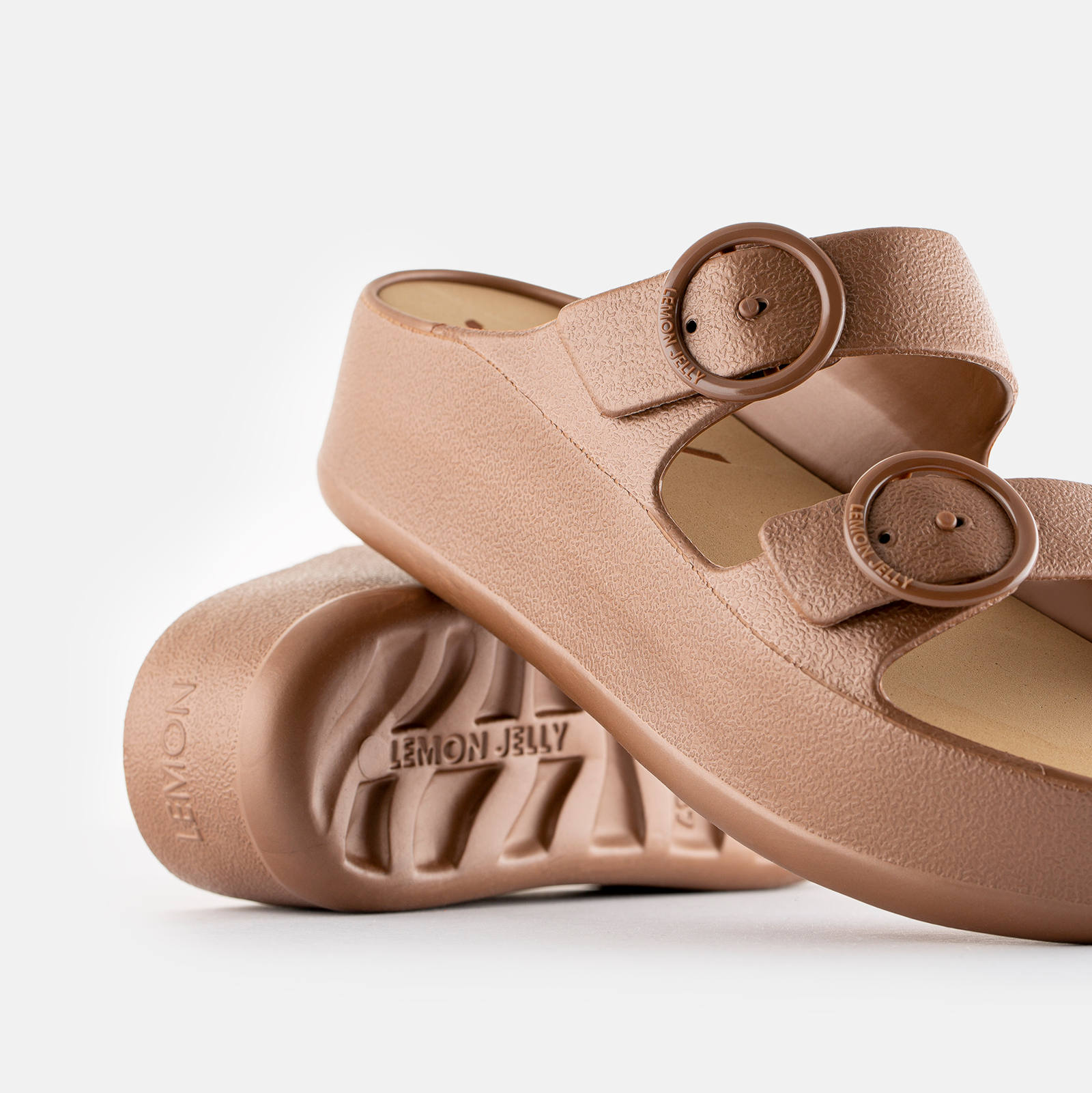- Hebilla de policarbonato con logo de la marca en relieve.